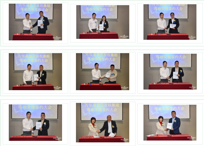尊龙时凯集团执行董事及法人代表王浩基先生正式为第一期六位虚拟受限股股东授予荣誉证书并签订股权分配协议。